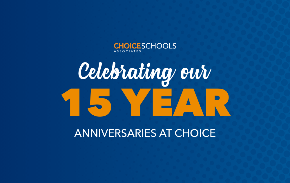 This week is Staff Appreciation Week and as we celebrate all our incredible employees, we want to share a special shout out to all those who are celebrating 15 years working at Choice Schools Associates. We are incredibly grateful for their passion and devotion to their schools each and every day! We are honored to support these champions who know, love and inspire their communities! Scroll to see all names of our wonderful staff who are celebrating anniversaries with us, and be sure to give a shout-out to anyone you know!